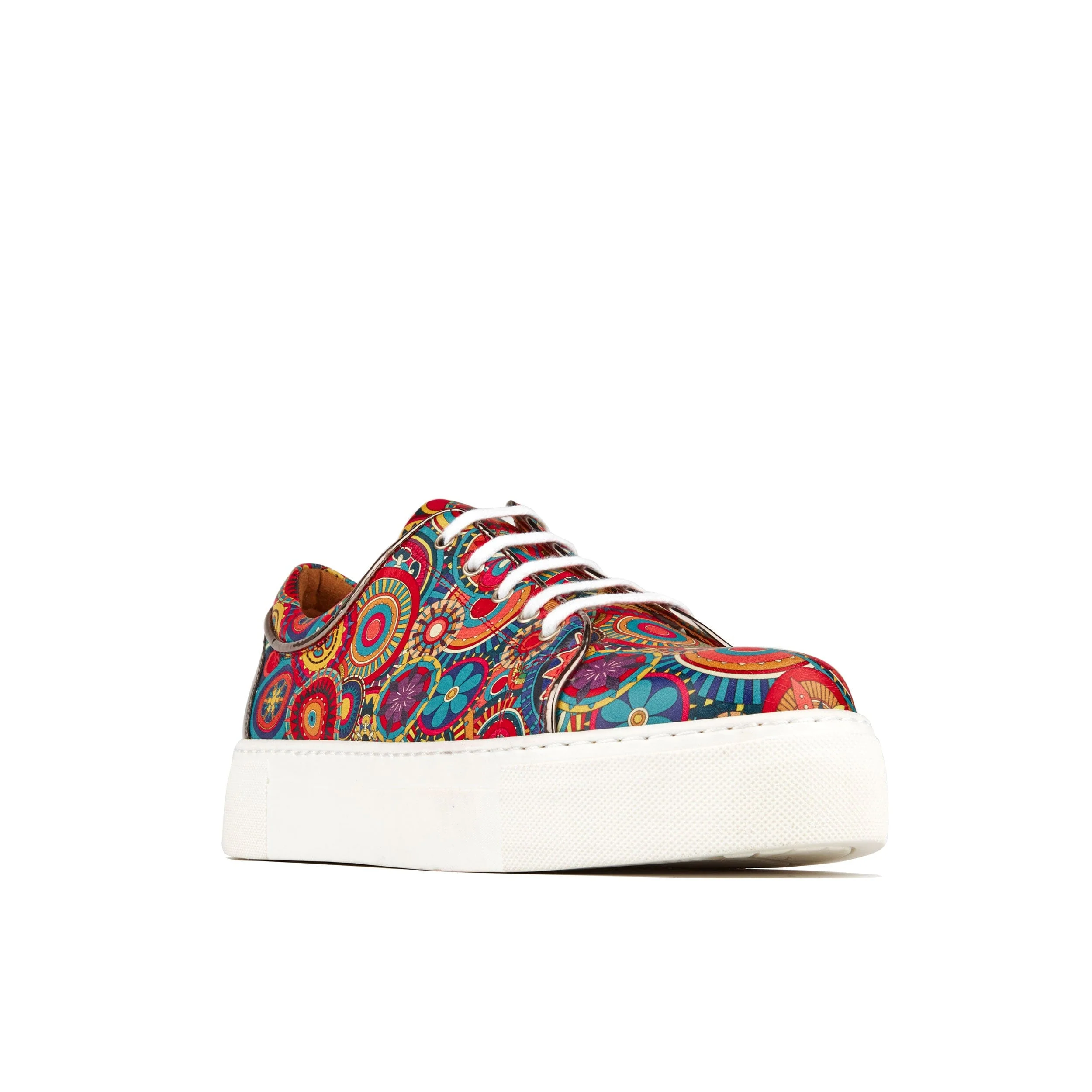 This lug sole, lightweight, womens luxury leather sneaker, handcrafted in a colorful leather combination, is the perfect Spring sneaker. The Camila Silver & Signature Print can easily take you from the gym to a lunch date. Paired with joggers or jeans, this womens designer sneaker is both stylish and comfortable. The Camila has a comfortable, on-trend lug sole, making sure "Compliments are Guaranteed". And the chrome patent leather detail on the heel is exquisite.