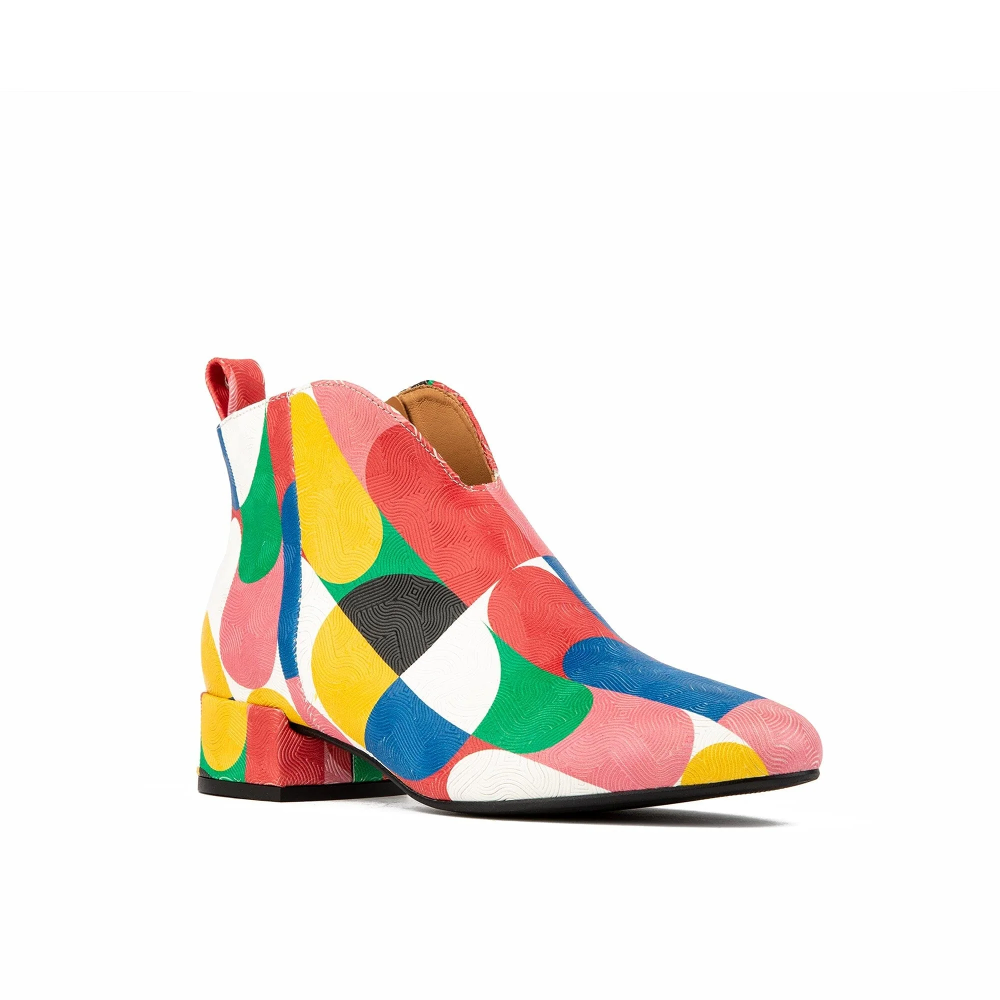 Forever classic, the Iris Groovy women's ankle boot is a mod patterned womens leather ankle bootie with a comfortable block heel. Handcrafted in patterned Italian leather, these low profile women's ankle boots are a comfortable, side zipper bootie that will go with anything your wardrobe from jeans to black leather pants. If you are searching for a versatile day to night ankle boot, look no further.